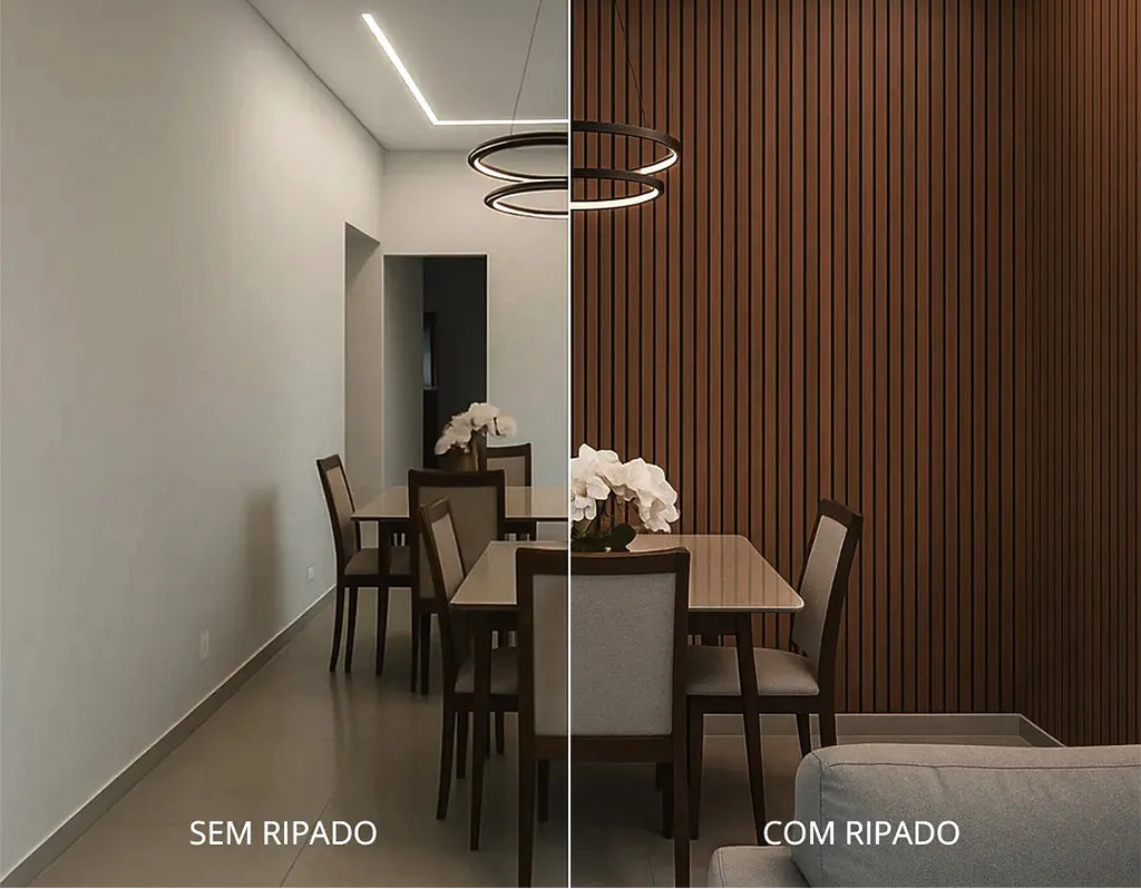 - Design Sofisticado: Traz a beleza e a textura do ripado para qualquer ambiente.